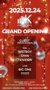 「MUSICBAR SIDE:K」は、韓国のクラブカルチャーのエッセンスを取り入れたミュージックラウンジバーです。最新のサウンドシステムと映像演出を備え、道頓堀の夜をさらに熱く彩る“音楽体験の拠点”を目指します。 すでに福岡・札幌で展開している「SIDE:K」ブランドを、今回さらにグレードアップ。大阪・ミナミ(心斎橋・道頓堀)という日本有数のナイトエンターテインメントエリアに、新たな旗艦店としてオープンいたします。